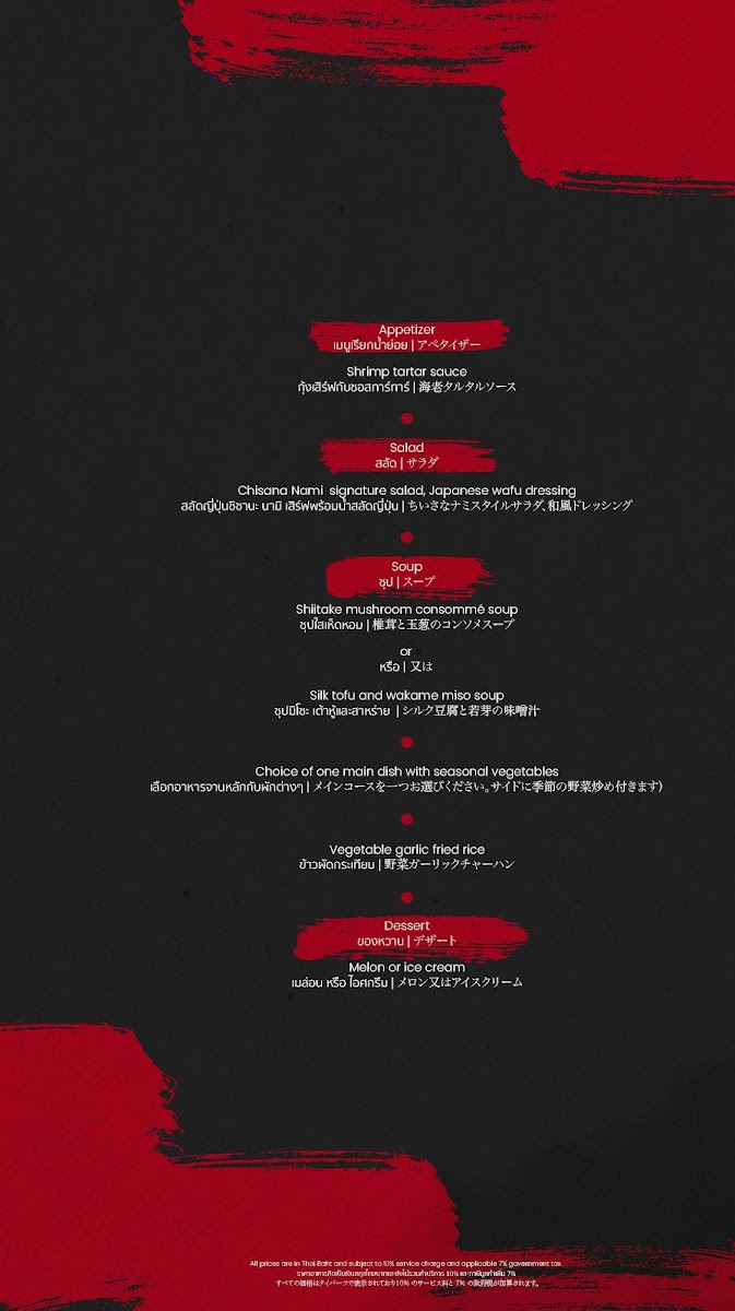 Welcome to Chisana Nami, a culinary gem nestled in the heart of Bangkok at 494 Phloen Chit Rd. This restaurant is not just a place to eat; it’s a full sensory experience. Diners rave about the cozy ambience and friendly service. Chef Cherry, renowned for her culinary mastery, crafts dishes that are both visually stunning and palate-pleasing. Customers have celebrated her juicy meats and exceptional fried rice, while others have been thrilled with the seafood finesse showcased in her shrimp and scallop dishes.